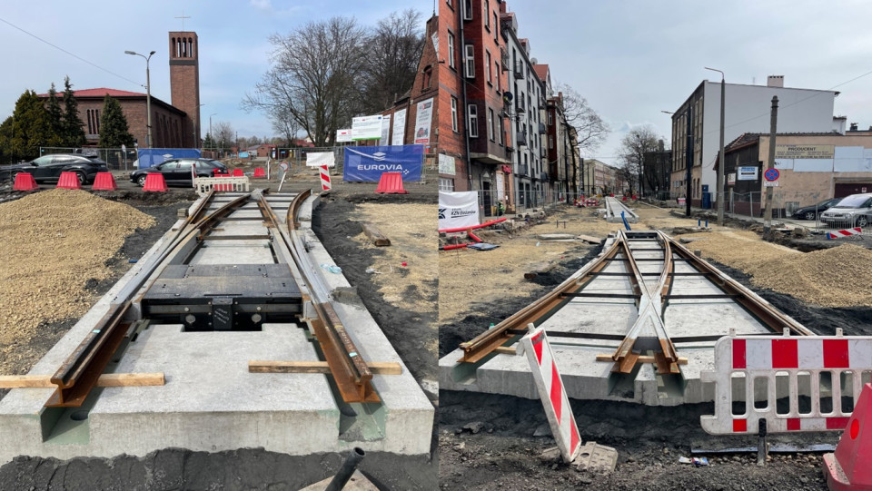 Bytom - Pierwszy prefabrykowany rozjazd tramwajowy zabudowany