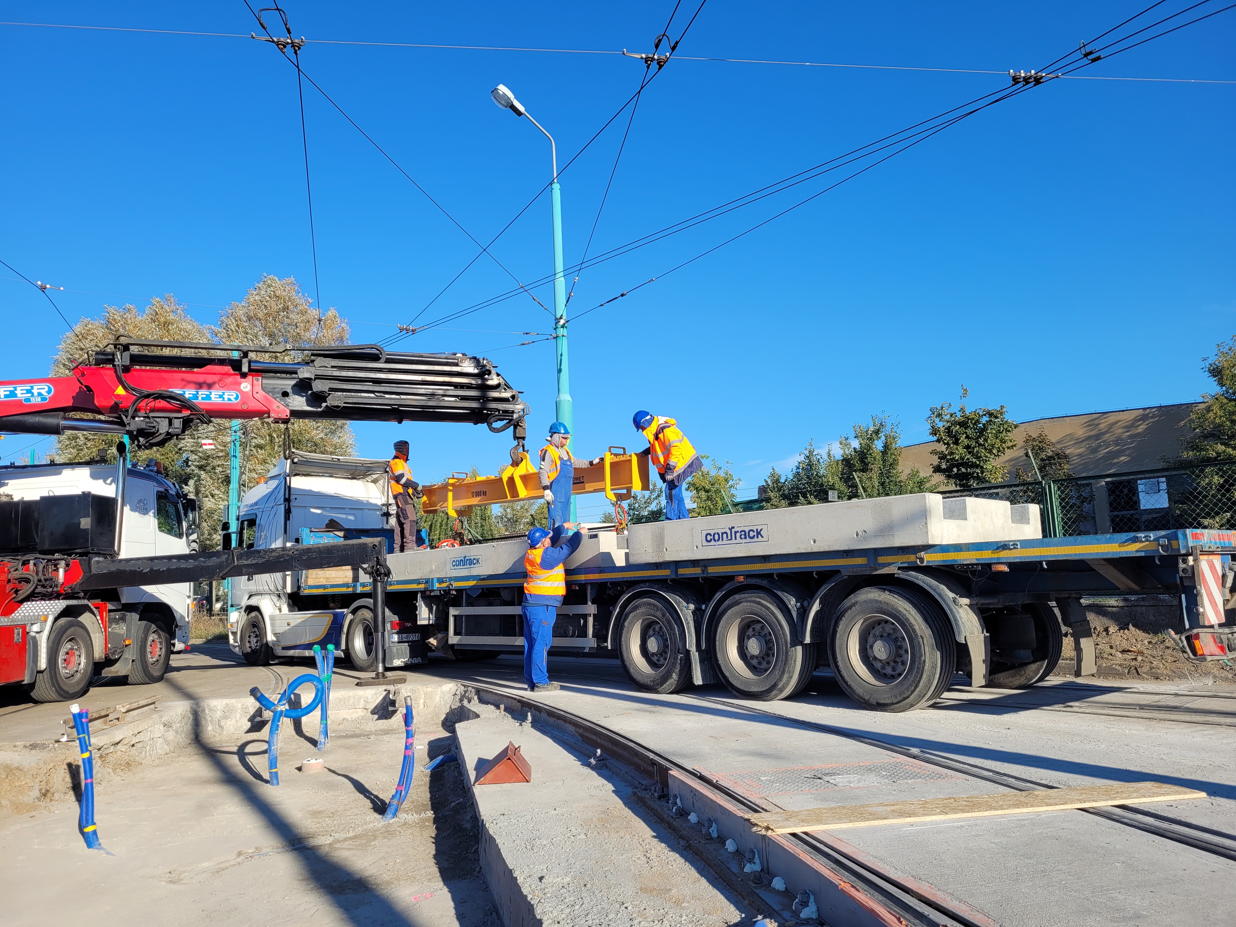 Całość prac została zorganizowana tak, by nie było konieczności ściągania i ponownego rozwieszania sieci trakcyjnej – np. z wykorzystaniem specjalnie dobranego dźwigu hds.