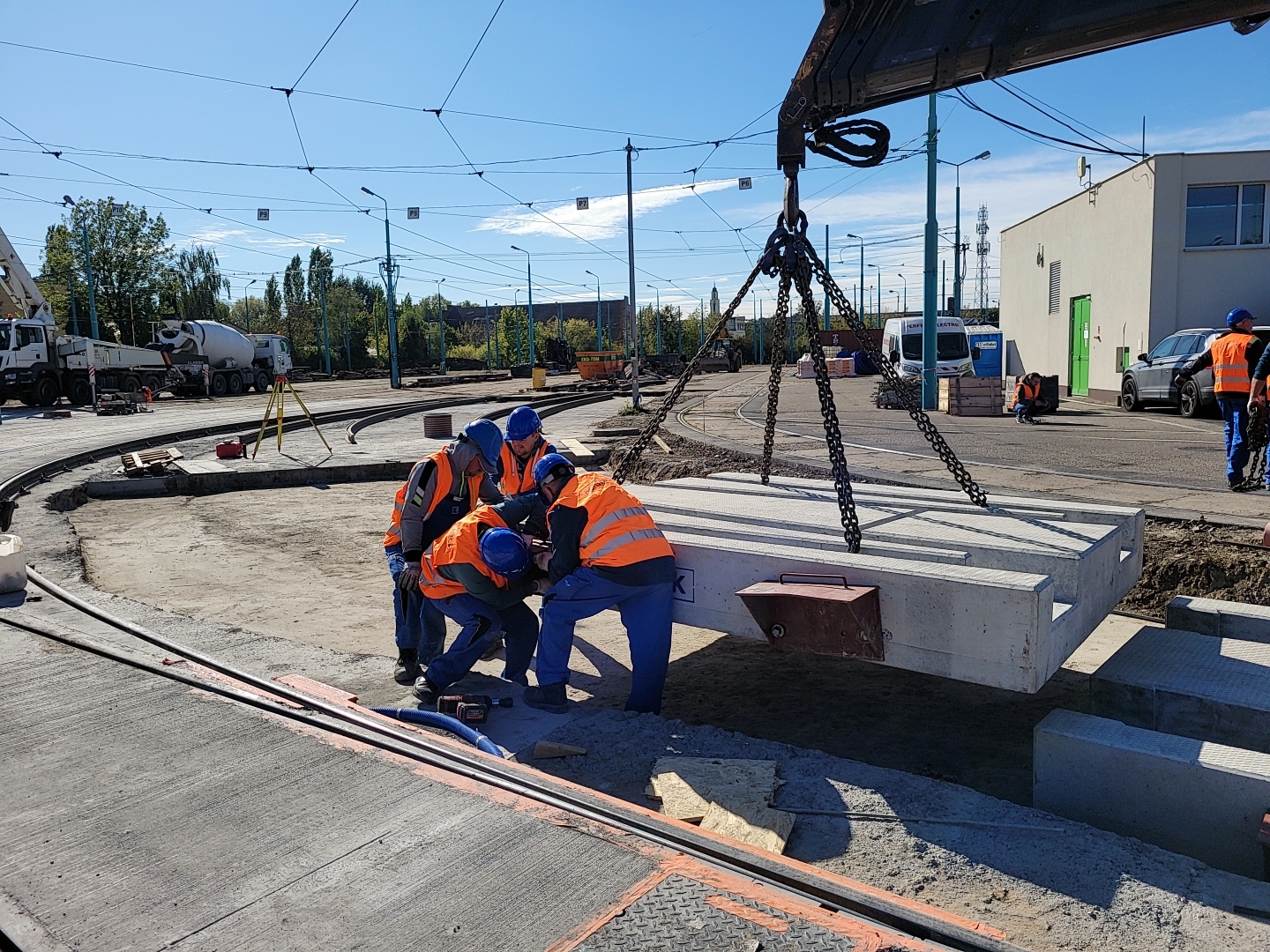 - zainstalowano rozjazd wraz z wyposażeniem w płytach prefabrykowanych;