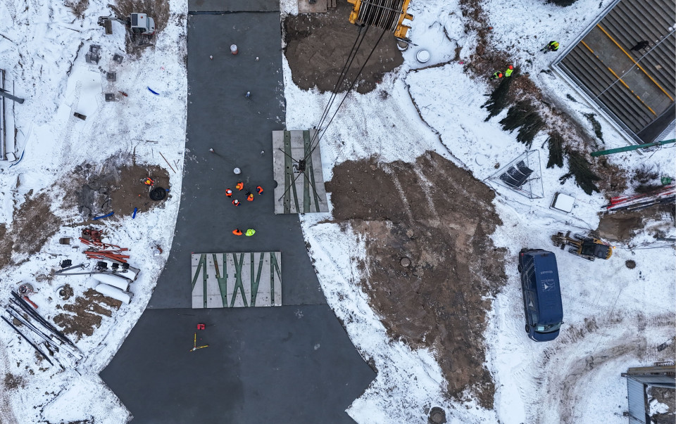 Jedną z kluczowych zalet zastosowania prefabrykowanych płyt torowych w technologii CONTRACK jest możliwość prowadzenia robót również w okresie zimowym, tak jak w przypadku Poznania, bez konieczności wprowadzania długotrwałych przerw technologicznych. Ujemne temperatury, opady śniegu czy ograniczona liczba godzin światła dziennego nie mają istotnego wpływu na tempo realizacji inwestycji, ponieważ najbardziej wrażliwy etap prac – wiązanie i dojrzewanie betonu – został w całości przeniesiony z placu budowy do zakładu prefabrykacji. Tam beton przechodzi pełny proces hydratacji w kontrolowanych warunkach temperaturowych i wilgotnościowych, osiągając wymagane parametry wytrzymałościowe jeszcze przed dostarczeniem elementów na budowę. Na placu budowy zakres prac ogranicza się do montażu prefabrykatów oraz ich precyzyjnej regulacji geometrycznej.