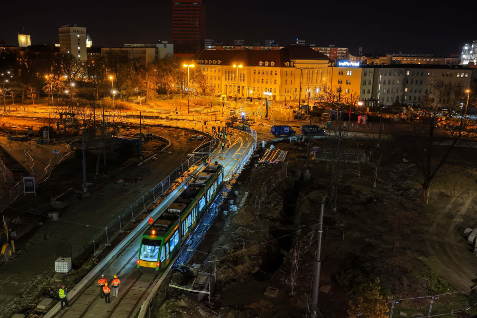 W Poznaniu trwa kompleksowa przebudowa kluczowego węzła komunikacyjnego przy ulicach Wierzbięcice, Matyi, Niezłomnych i Królowej Jadwigi, w ramach budowy nowej trasy tramwajowej w ulicy Ratajczaka — jednej z największych i najbardziej złożonych inwestycji infrastrukturalnych realizowanych w ostatnich latach w śródmiejskiej zabudowie. Prace wiążą się z ogromnym zakresem przygotowań logistycznych, szczegółową koordynacją sieci podziemnych, przebudową infrastruktury drogowej i trakcyjnej oraz licznymi ustaleniami technicznymi z miejskimi służbami i wykonawcami. Już na etapie projektowania trzeba było uwzględnić nie tylko skomplikowaną geometrię torowiska, ale także gęstą zabudowę miejską, istniejące instalacje podziemne i potrzeby codziennej komunikacji mieszkańców, co uczyniło ten węzeł jednym z najbardziej wymagających punktów do realizacji w całym Poznaniu.