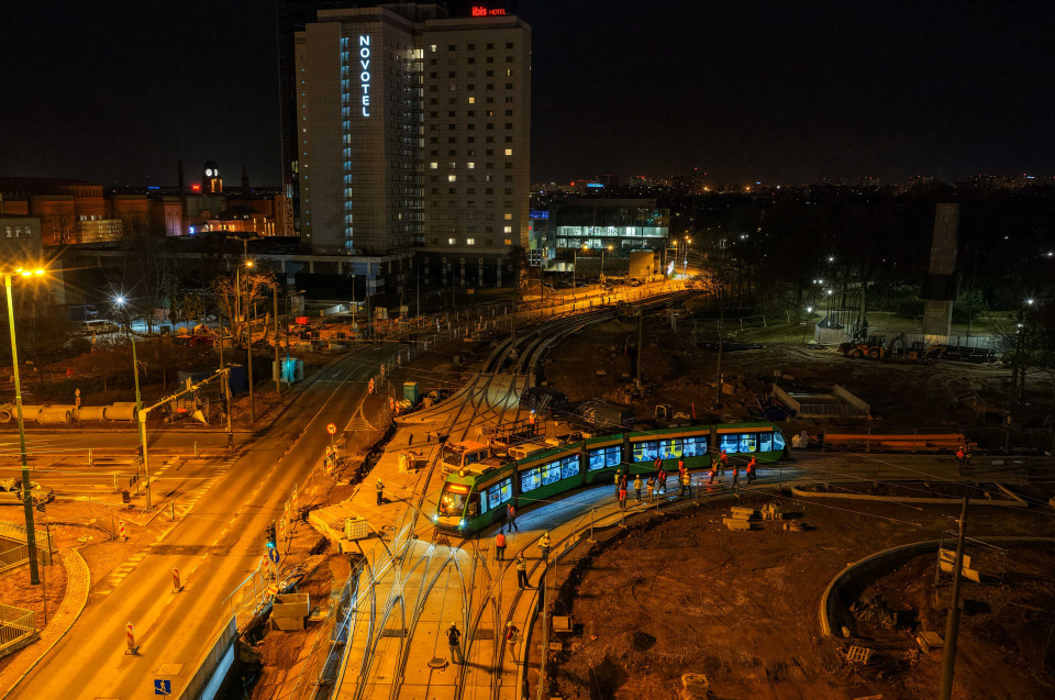 Kluczowym momentem w realizacji inwestycji była próba torowa przeprowadzona w nocy z 26 na 27 marca 2026 r., kiedy to przez nowo zbudowane torowisko przejechał tramwaj testowy. Próba zakończyła się pomyślnie, potwierdzając gotowość przebudowanego układu torowego do obsługi ruchu pasażerskiego. Dzięki sprawnej organizacji prac na placu budowy, precyzyjnie zaplanowanej logistyce dostaw prefabrykowanych elementów torowych oraz zastosowaniu nowoczesnej technologii CONTRACK, wszystkie roboty torowe przebiegły znacznie szybciej niż pierwotnie zakładano, co pozwoliło wznowić ruch tramwajowy na odcinku Wierzbięcice–Matyi już od 2 kwietnia 2026 roku, aż o trzy miesiące wcześniej niż przewidywały pierwotne plany miasta.
