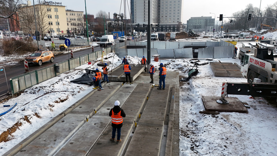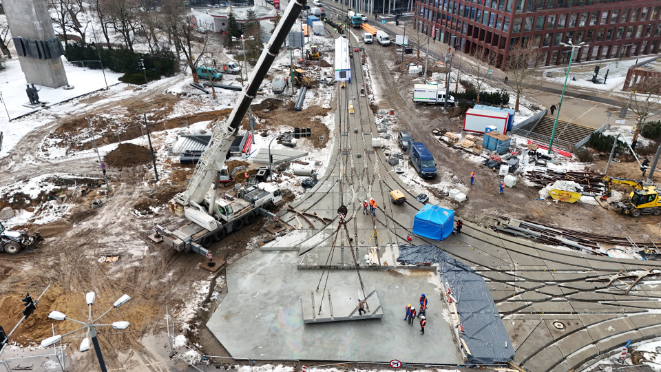 Prefabrykowane płyty torowe w technologii CONTRACK dotarły na plac budowy w Poznaniu w styczniu 2026 r., a następnie systematycznie dostarczano kolejne partie, zgodnie z harmonogramem, który umożliwiał płynny montaż i koordynację z równolegle prowadzonymi pracami infrastrukturalnymi. Pierwszy etap, obejmujący ułożenie części torowiska wraz z rozjazdami, został zakończony już 10 lutego. Drugi etap, zakończony pod koniec marca, objął kolejne odcinki torów, montaż pozostałych prefabrykatów i precyzyjne dopasowanie rozjazdów w obrębie węzła.
