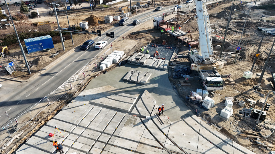 Równolegle do montażu prefabrykatów prowadzone były roboty związane z przebudową infrastruktury podziemnej: kanalizacji, wodociągów, energetyki, a także odwodnienia torowiska i fundamentów pod słupy trakcyjne. Przebudowie towarzyszyła modernizacja nawierzchni dróg, chodników oraz przestrzeni publicznej wokół węzła, co ma pozytywnie wpłynąć na komfort korzystania z całego rejonu po zakończeniu inwestycji.